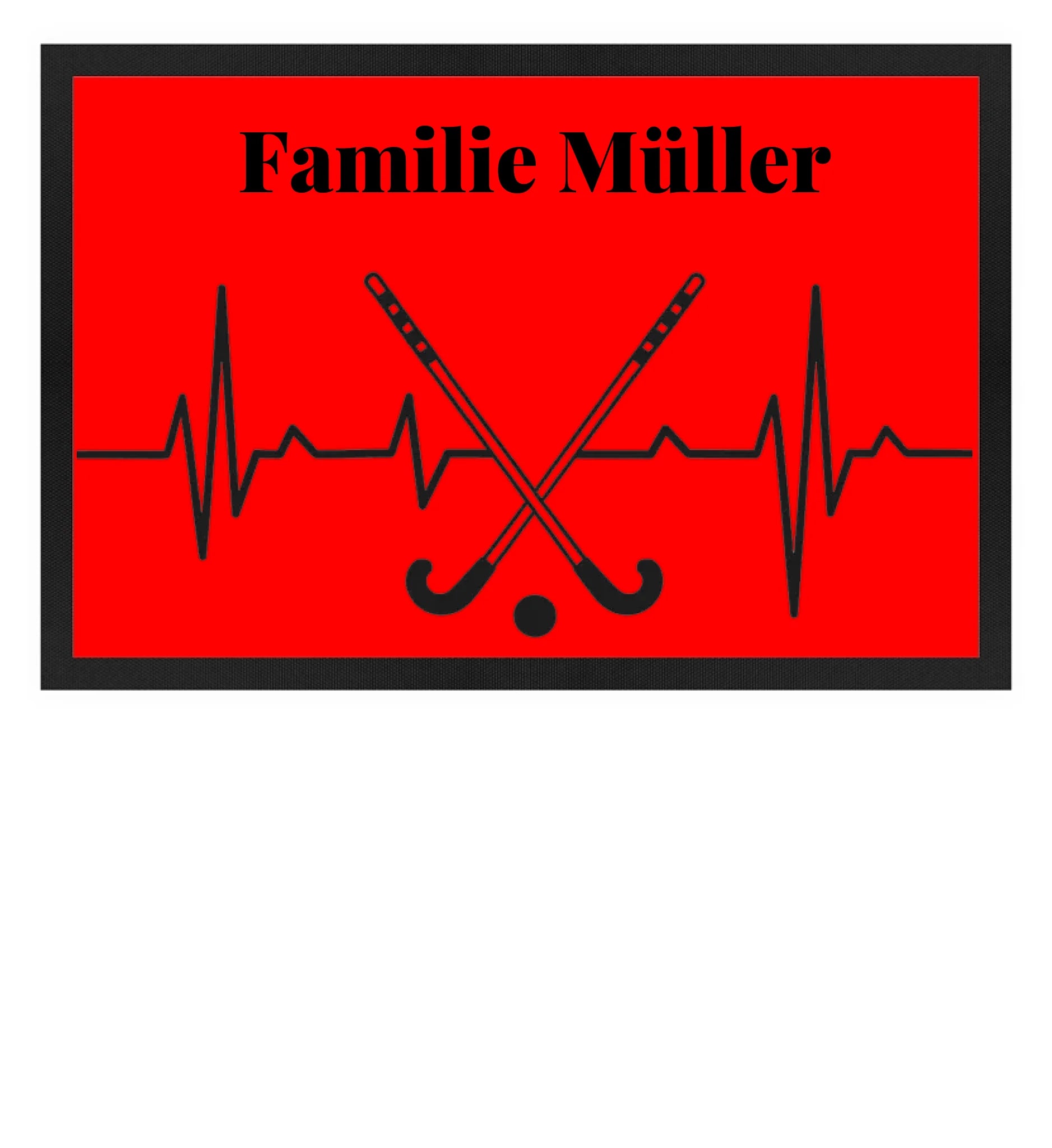 Fußmatte personalisierbar - Hockeyherzschlag schwarz
